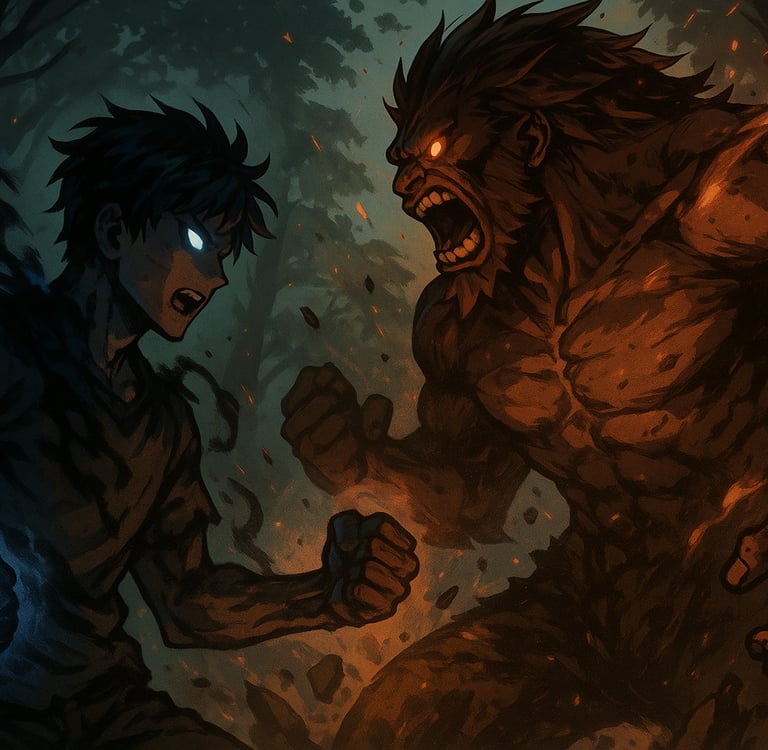 The fight turned into a deadly dance—Daniel weaving in and out with blazing speed, his fists crackling with a dim but potent glow. He caught glimpses of his opponent’s monstrous form: sinews flexing with unnatural strength, eyes burning with brutal rage.